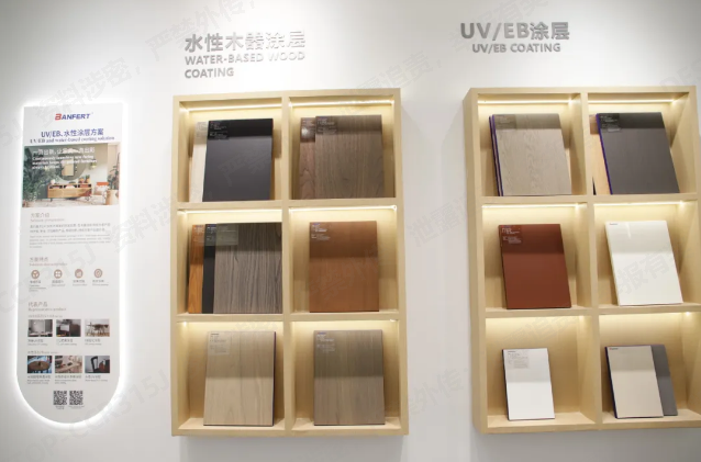 本次展出的UV/EB和水性涂層他們都運用了什么新的技術工藝,最后呈現了什么樣的表面效果?