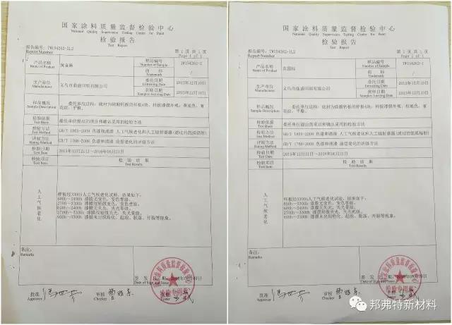 檢驗報告(鼎盛戶外耐曬膜+邦弗特UV戶外涂料)